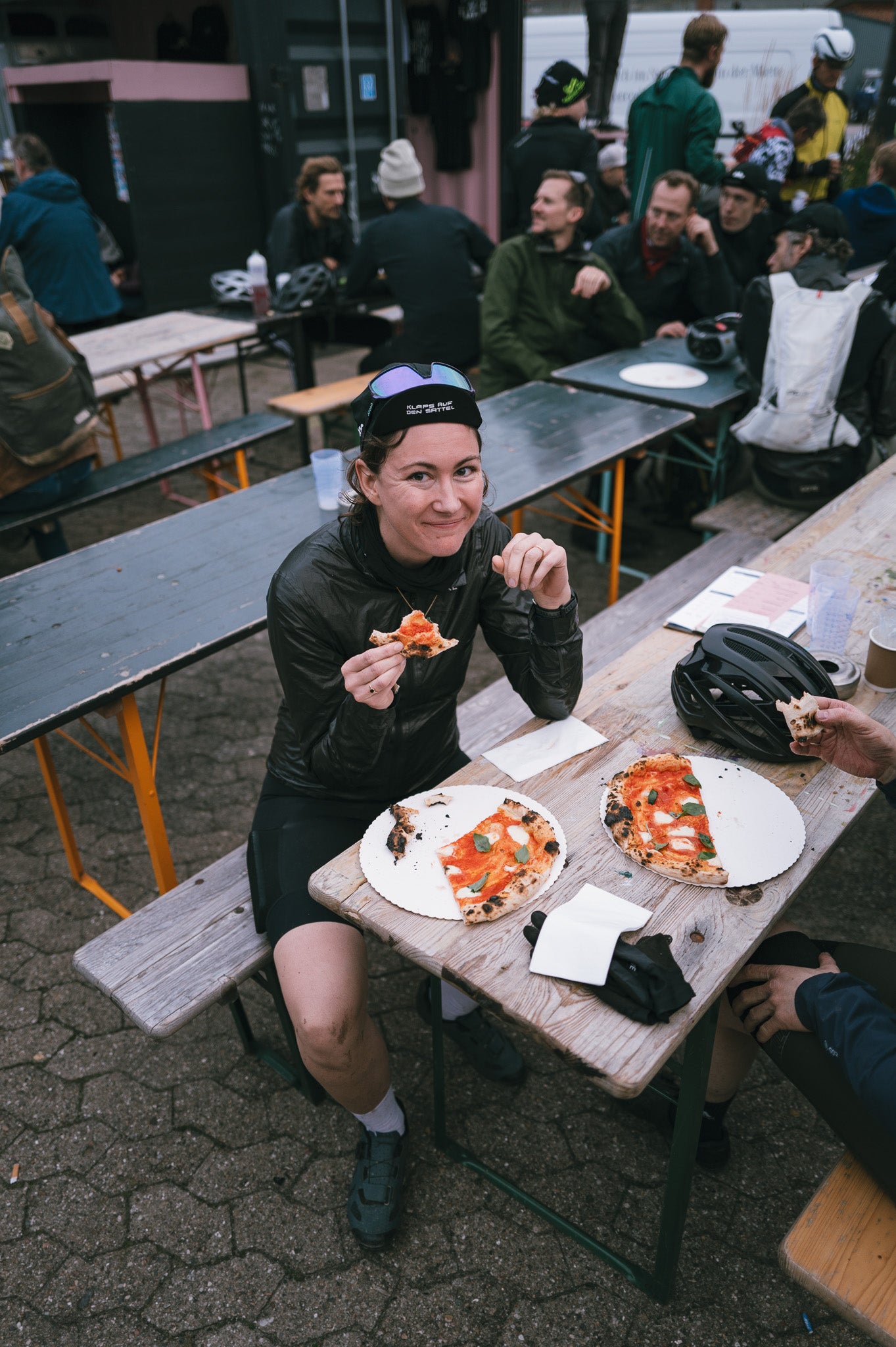 Ein zentraler Punkt von jedem Matschfuss: Kulinarik. Bereits vor dem Start könnt ihr euch mit verschiedenen Köstlichkeiten stärken. Unterwegs bekommt ihr gewohnt geile Checkpoints mit Essen und Trinken, um weiter für den Gravel gewappnet zu sein. Packt euch natürlich trotzdem Gels oder Riegel und Wasser ein, denn sicher ist sicher! Im Ziel gibt es dann ein leckeres (alkoholfreies) Bierchen und Foodtrucks!
